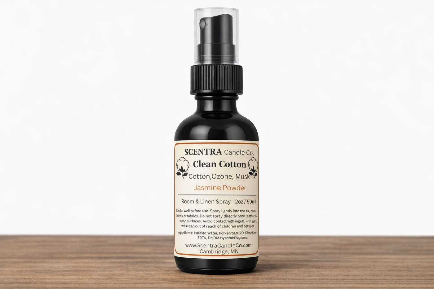 Experience the perfect aroma of crisp, freshly washed linens with Clean Cotton Room & Linen Spray from SCENTRA Candle Co.